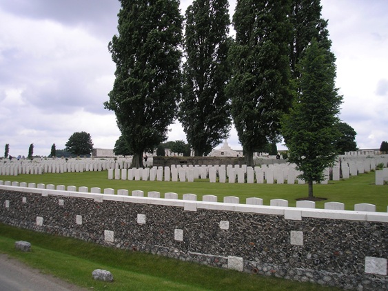 Tyne Cot Cemetery overlooks the battlefields of Passchendaele and is built around German blockhouses. Indeed, the central Cross of Remembrance is built on and around oneof these. Its name was given by the men of the Northumberland Fusiliers (Tyne-siders). One of the pillboxes was an Advanced Dressing Station. It was captured by the 3rd Australians Division in October 1917, lost in April 1918 and recaptured five months later. There are 11,956 graves there and 8,637 are of unnamed soldiers. It is the largest number of burials of any war. The panels have inscribed the names of 33,783 men by their respective Regiments who have ‘no known grave’ and William’s name is inscribed under his Regiment and may be one who is buried there. |