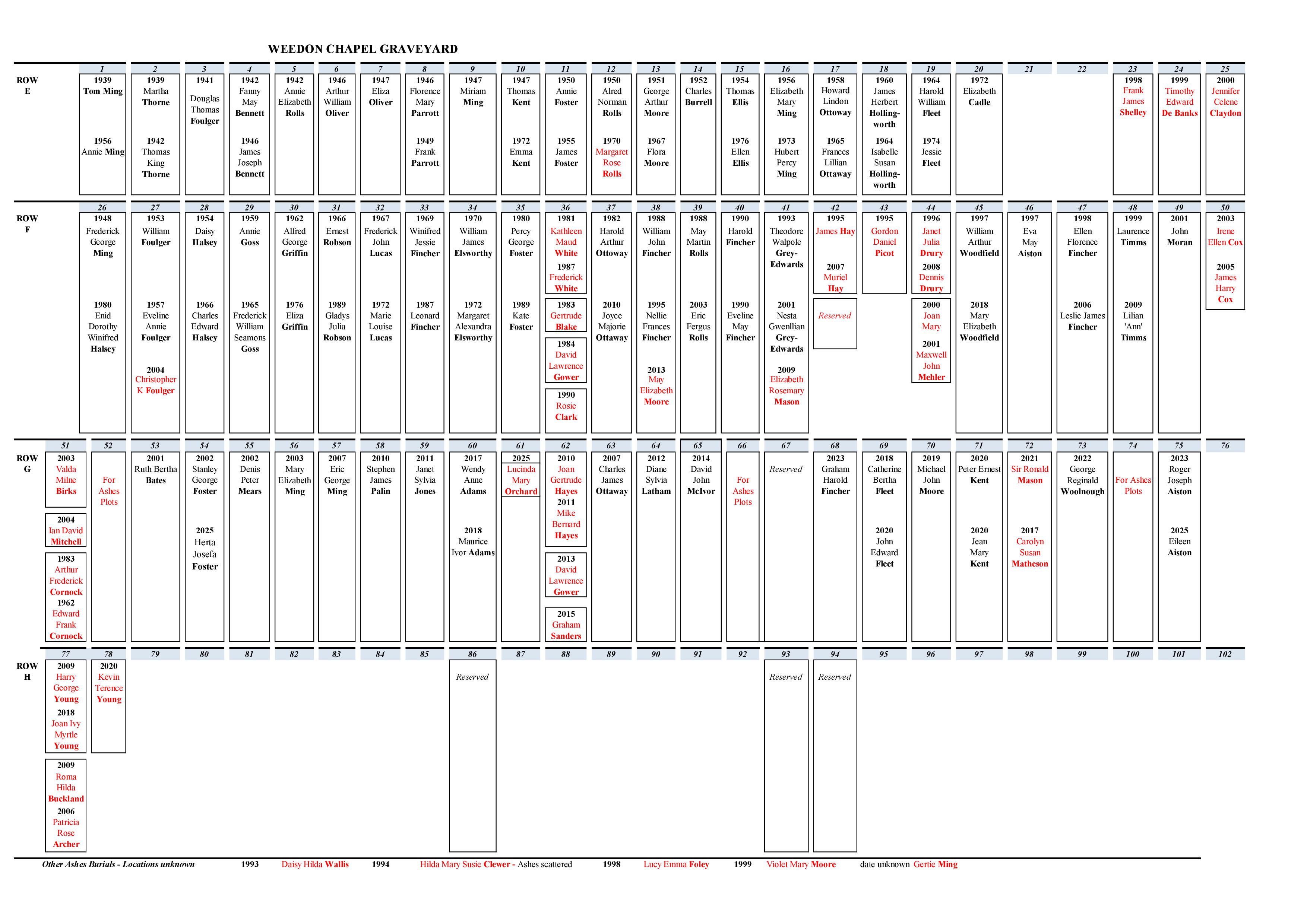 OPEN PLAN OF WEEDON CHAPEL NEW GRAVEYARD HERE AS PDF TO INSPECT IN DETAIL