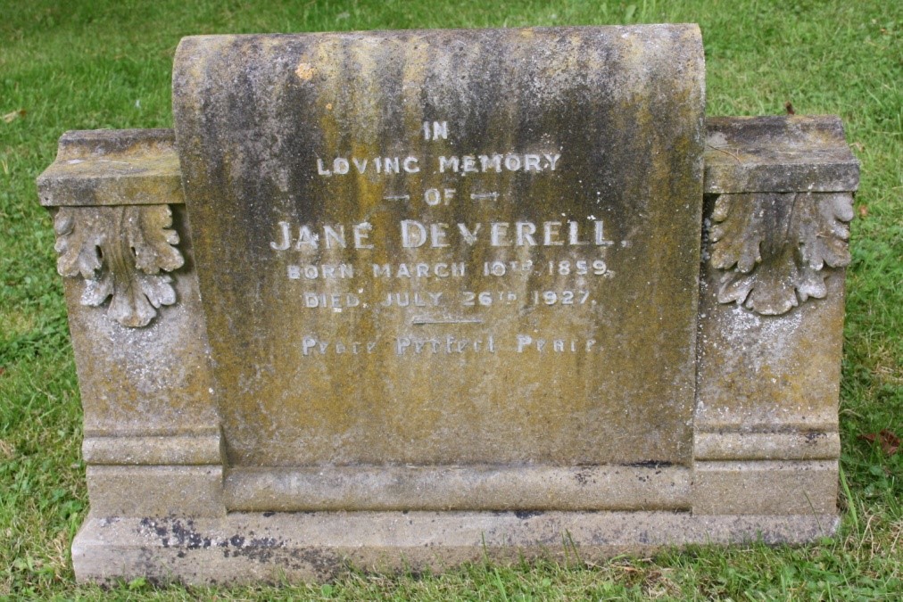IN LOVING MEMORY OF JANE DEVERELL BORN MARCH 10th1859 DIED JULY 26TH1927
