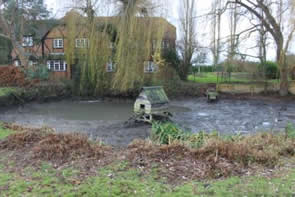 Following expert advice from an Ecological Consultant who had examined over 1,000 ponds in the region, and oversaw the works to Walton Pond in Aylesbury, in December 2011 while the water was low, we dug out the silt from the pond base.