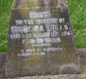 Georgina Rolls was born Jessie Gardiner, the elder sister of Thomas. He changed his name during his lifetime to Thomas Gardiner Rolls Hales when he married Martha Hales. After her mother died, when she was an infant, she lived with the Rolls family. She suffered an infection of her brain which left her unable to look after herself and was interned, in 1871, in the Union Workhouse in Aylesbury until her death. The family referred to her as Georgina and she became a Rolls. Her mother is remembered in the window dedicated to her and paid by her brother Thomas.