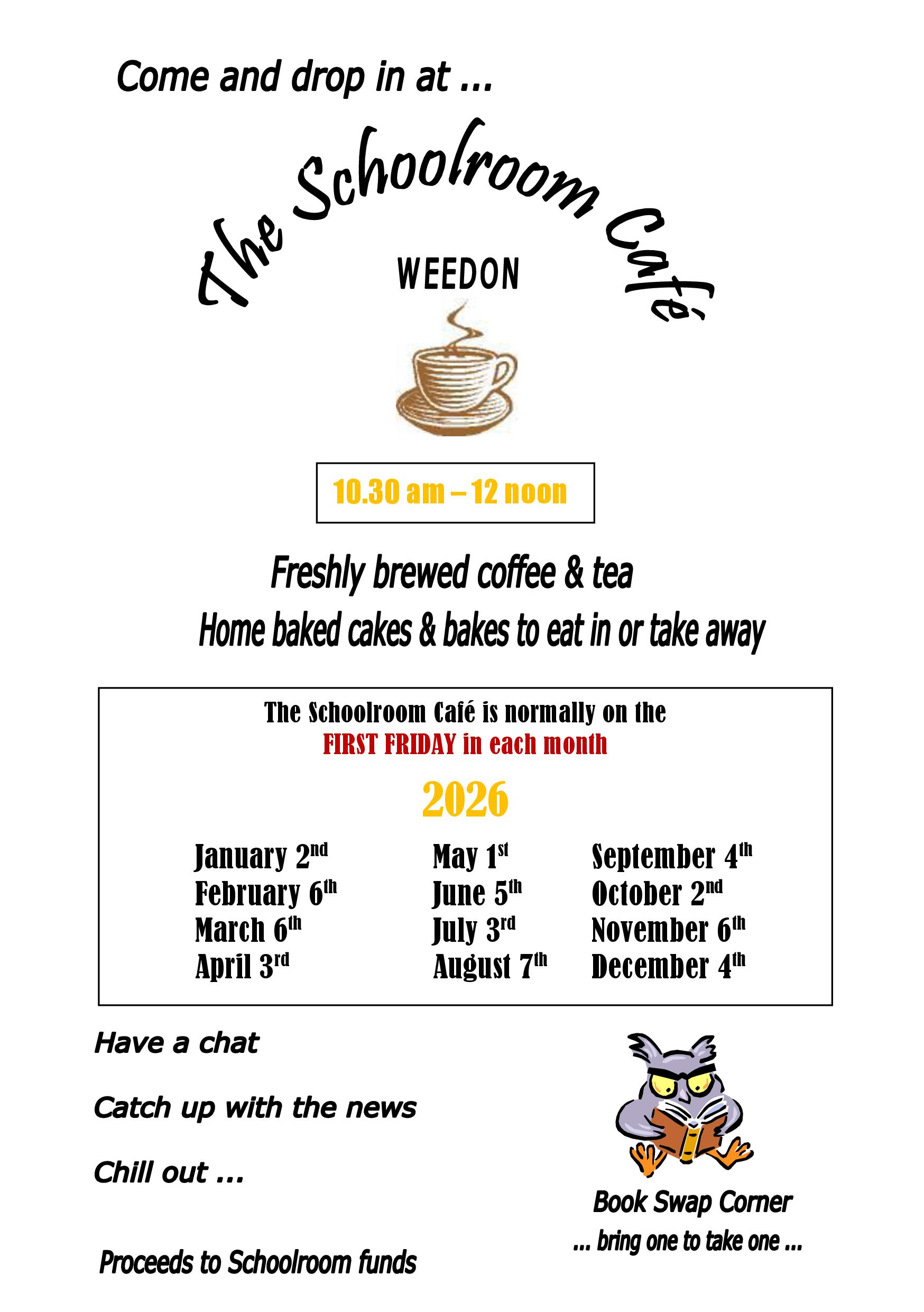 | Various times | Weedon Village Association | Catherine | 07941 172118 |