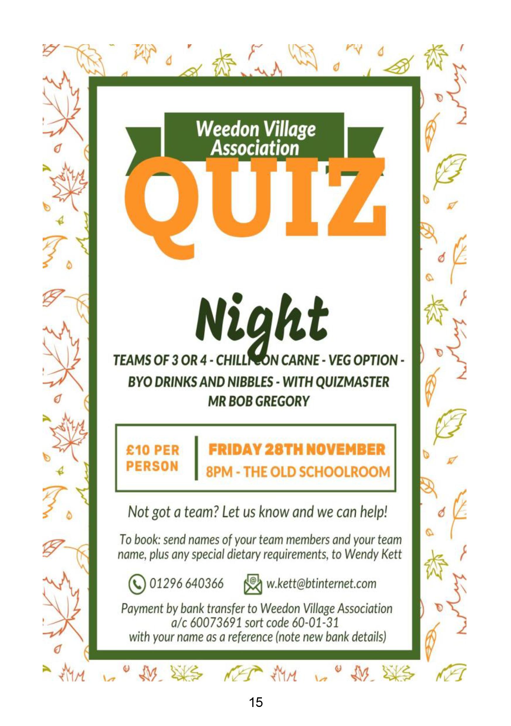 Weedon Village Association organises a variety of events for all who live in Weedon.